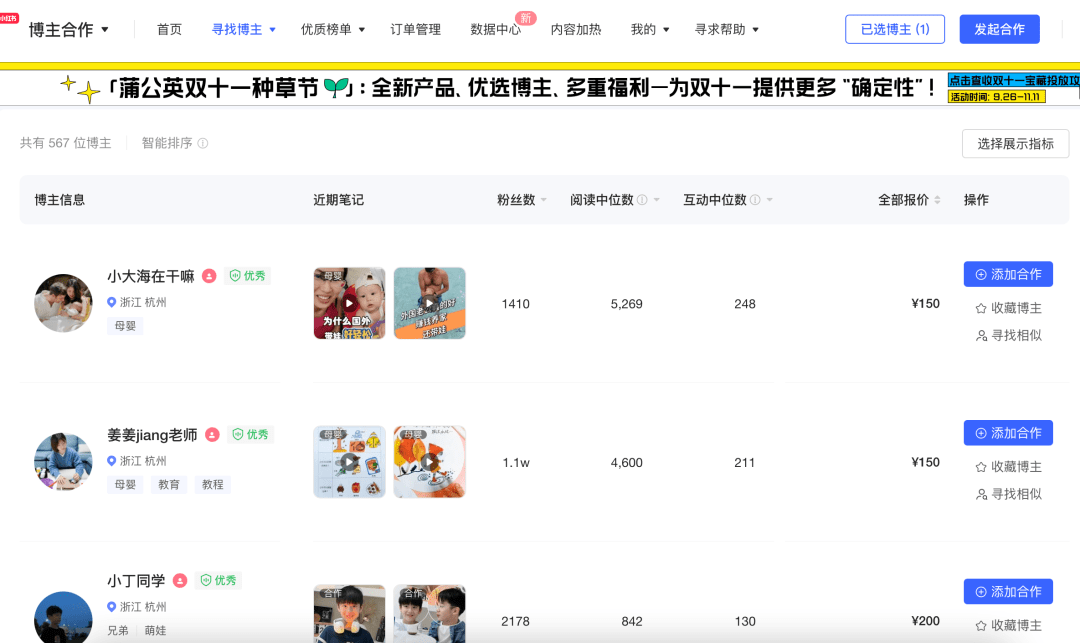 可重点查看正在孕期的这一批博主,后台添加合作。平台收取10%的中介费,例如博主报价200,我们商家实际支付的费用为220元。