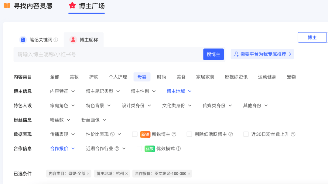 其实也不用担心通过平台找达人种草贵,我们可以通过蒲公英后台寻找博主功能去筛选达人的费用,地域等便签即可。